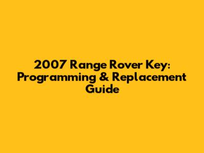 2007 Range Rover Key: Programming & Replacement Guide