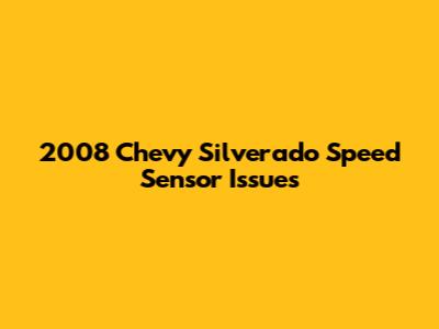 Common Problems with the 2008 Chevy Silverado Speed Sensor