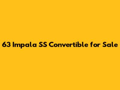63 Impala SS Convertible For Sale: Find Your Dream Ride!