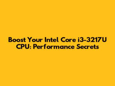 Boost Your Intel Core I3-3217U CPU: Performance Secrets