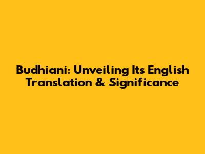 Budhiani: Unveiling Its English Translation & Significance