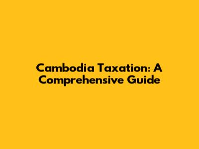 Cambodia Taxation: A Comprehensive Guide