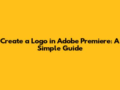 Step-by-Step Guide to Creating a Logo in Adobe Premiere