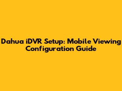 Dahua IDVR Setup: Mobile Viewing Configuration Guide