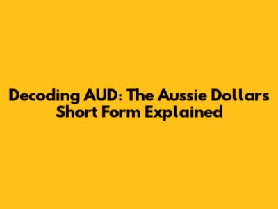 Decoding AUD: The Aussie Dollar's Short Form Explained