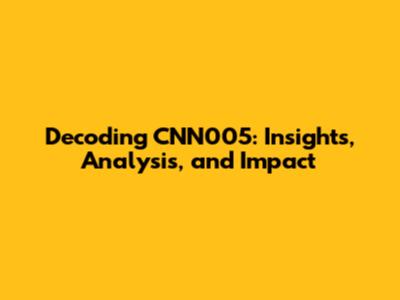 Decoding CNN005: Insights, Analysis, And Impact