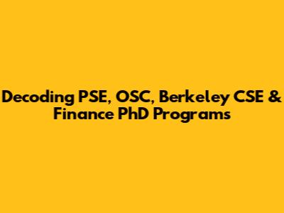 Decoding PSE, OSC, Berkeley CSE & Finance PhD Programs
