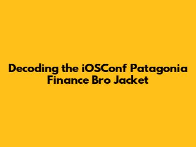 Alright, tech enthusiasts and fashion aficionados, let's dive deep into the intriguing world of the "iOSConf Patagonia Finance Bro Jacket." This isn't just your run-of-the-mill piece of outerwear; it's a symbol, a statement, and a conversation starter all rolled into one. Whether you're an iOS developer, a finance professional, or simply someone with an eye for unique clothing, understanding the nuances of this jacket can offer insights into the intersection of tech culture, finance aesthetics, and regional identity.