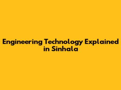 Engineering Technology Explained In Sinhala