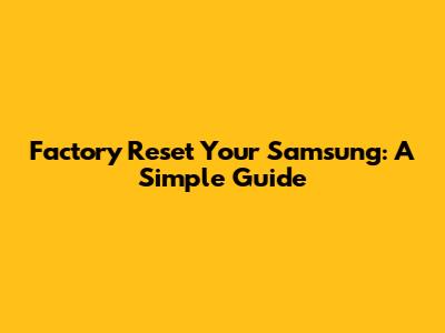 Factory Reset Your Samsung: A Simple Guide