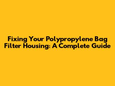 Fixing Your Polypropylene Bag Filter Housing: A Complete Guide