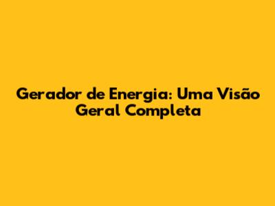 Gerador De Energia: Guia Completo E Detalhado