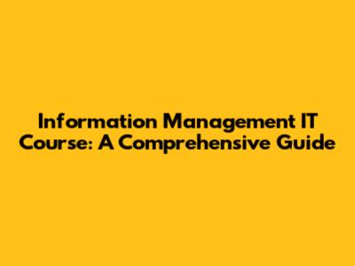 Information Management IT Course: A Comprehensive Guide