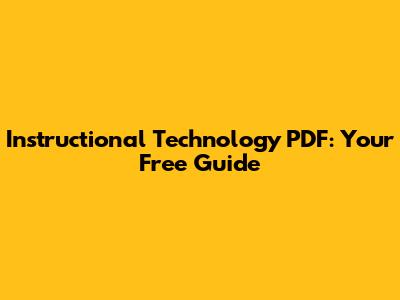 Instructional Technology PDF: Your Free Guide