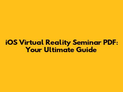Hey guys! Ever wondered about the intersection of iOS development and the mind-blowing world of Virtual Reality (VR)? Well, you're in the right place! This article dives deep into the exciting realm of iOS Virtual Reality Seminar PDF resources, giving you the lowdown on everything from the basics to advanced techniques. We'll explore how to get your hands on some fantastic seminar materials, dissect the core concepts, and equip you with the knowledge to build your own immersive VR experiences on Apple's mobile platform. Get ready to level up your skills and become a VR guru!