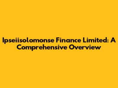 Hey everyone, let's dive into the world of Ipseiisolomonse Finance Limited! This guide is designed to give you a complete understanding of what they do, their services, and how they can potentially help you manage your finances. We will break down everything in a clear, easy-to-understand way, so you don't need a finance degree to follow along. So, grab a cup of coffee, and let's get started. We'll explore the ins and outs of Ipseiisolomonse Finance, and by the end, you'll have a solid grasp of what this financial institution is all about.