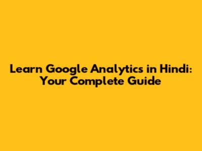 Learn Google Analytics In Hindi: Your Complete Guide