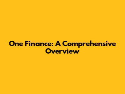 One Finance: A Comprehensive Overview