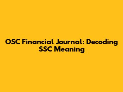 OSC Financial Journal: Decoding SSC Meaning
