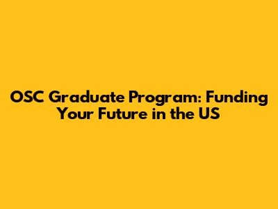 OSC Graduate Program: Funding Your Future In The US