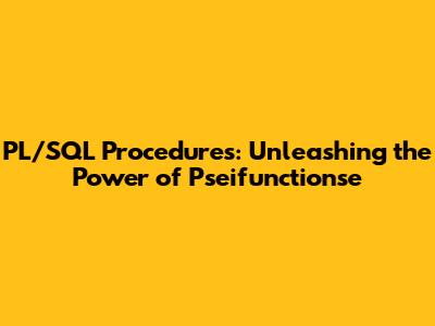 PL/SQL Procedures: Unleashing The Power Of Pseifunctionse