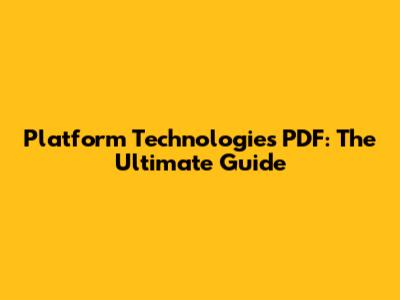 Platform Technologies PDF: The Ultimate Guide