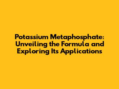 The Significance of the Potassium Metaphosphate Formula: Why Should You Care?