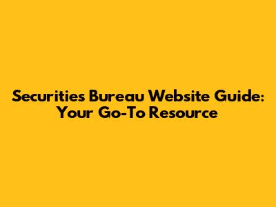 Securities Bureau Website Guide: Tips & Resources
