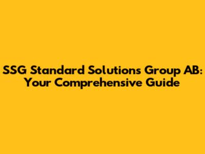 SSG Standard Solutions Group AB: Your Comprehensive Guide