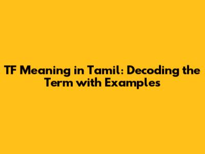 TF Meaning In Tamil: Understanding The Term With Examples