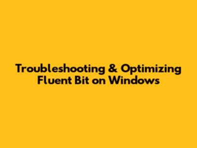 Troubleshooting & Optimizing Fluent Bit On Windows
