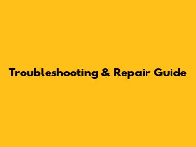 Troubleshooting & Repair Guide