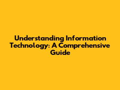 Understanding Information Technology: A Comprehensive Guide