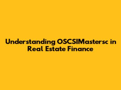 Why is OSCSIMastersc Important in Real Estate Finance?