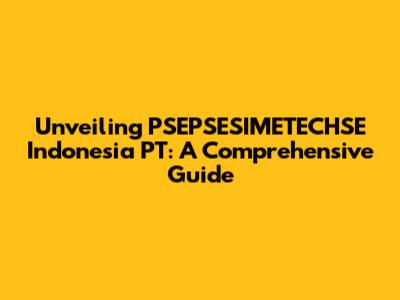 Unveiling PSEPSESIMETECHSE Indonesia PT: A Comprehensive Guide