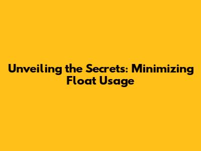 Unveiling The Secrets: Minimizing Float Usage